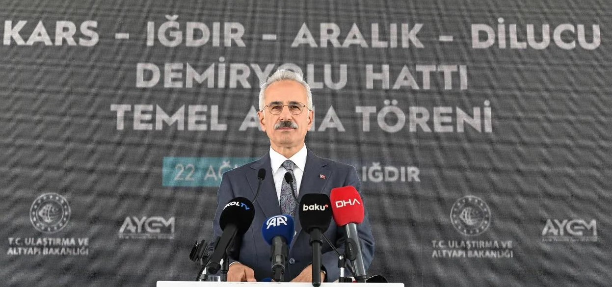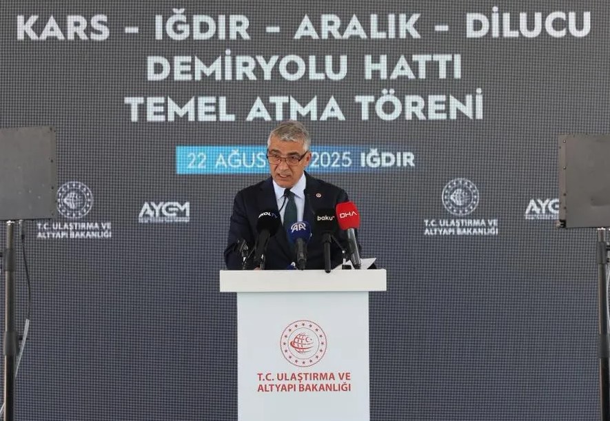 Ulaştırma ve Altyapı Bakanı Abdülkadir Uraloğlu, Türkiye’nin Kafkasya ile bağlantısını güçlendirecek stratejik bir proje olan Kars-Iğdır-Aralık-Dilucu Demiryolu Hattının temel atma törenine katıldı.