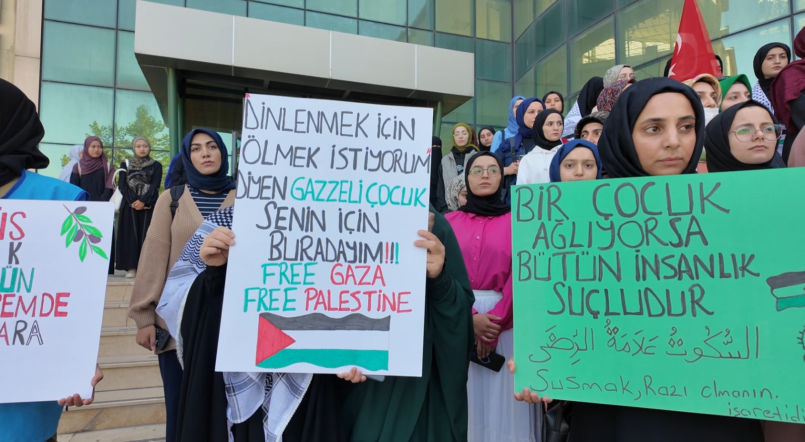 “Bugün, 1-7 Ekim 2023’teki Aksa Tufanı’nın yıl dönümünde, Gazze’deki kardeşlerimizin sesi olmak için toplandık. Gazze’de her gün çocuklar, kadınlar, yaşlılar hayattan koparılıyor. Gençlik umudun, direnişin ve yarınların adıdır. Biz bu umudu yaşatmak için buradayız.”