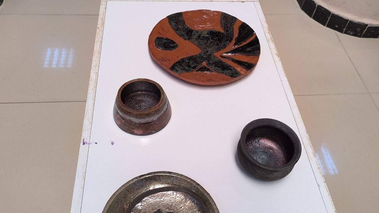 Muz ve ceviz kabukları, bakır teller, renklendirici oksitler ve sülfatlarla harmanlanan yaklaşık 70 seramik eser, yüksek ısı eşliğinde eşsiz bir dönüşüm sürecine bırakıldı.